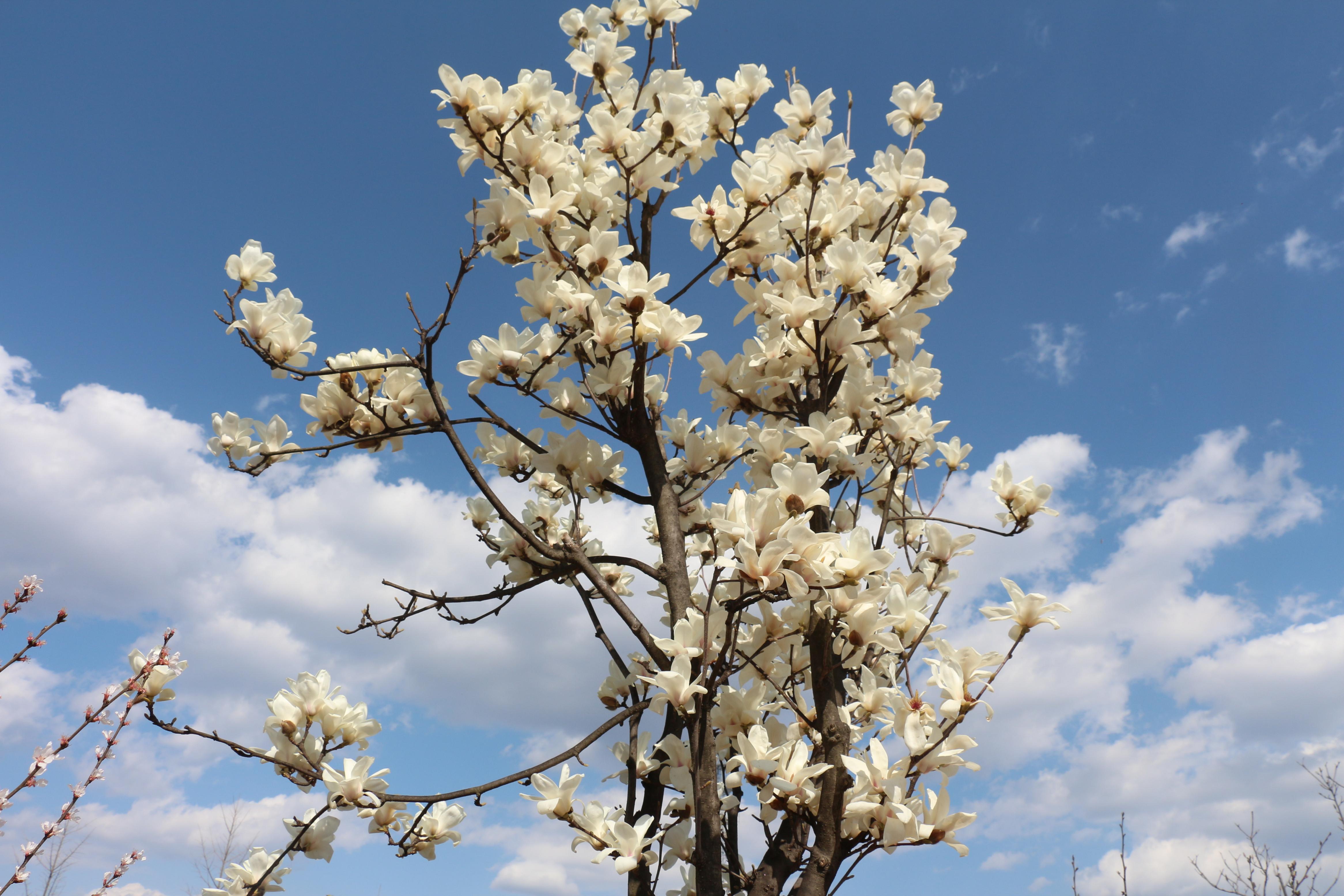海棠孤自傲,玉蘭白如棉;