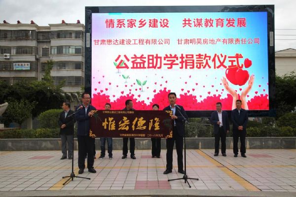 甘肅懋達建設工程有限公司自成立以來,始終堅持“誠信為本、質量第一、追求卓越、服務社會”的企業(yè)宗旨,先后承建了蘭州亞泉灣、天水成紀新家園、金徽酒技改等一批省內重點項目,得到了社會的認可。近年來,我們積極響應縣委、政府的倡議,一直把關注社會公益事業(yè)、重視社會責任、做優(yōu)秀企業(yè)當作企業(yè)文化的重要組成部分,參與精準扶貧、教育幫扶等社會公益事業(yè),以實際行動回饋社會,傳遞正能量,履行社會責任。