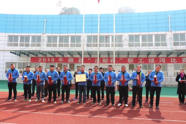 由中共徽縣委宣傳部、徽縣文化體育廣播影視局組織的2018年徽縣“慶新春”職工拔河比賽于2月27日上午在徽縣體育中心舉行,共46支隊伍參賽(男子組26隊,女子組20隊)。甘肅懋達建設工程有限公司組織男、女代表隊參賽。