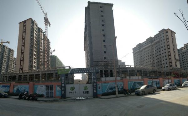 工程進度:一期工程計劃6月底全面交工,現外墻涂料、石材幕墻、消防正在施工;二期工程計劃8月底全面交工,現23#、26#、35#樓裝飾裝修(砌體)正在施工,22#樓目前三層已平口。