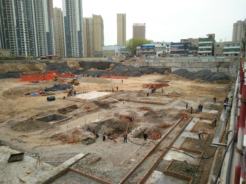 工程進度:1#樓正在進行基礎墊層、磚胎膜施工,5#樓已完成塔吊基礎磚模砌筑。
