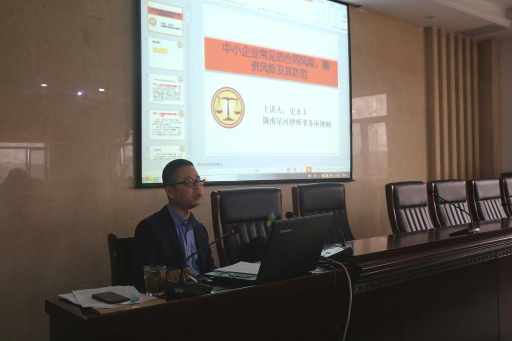培訓(xùn)會上,史永豐結(jié)合企業(yè)生產(chǎn)經(jīng)營實(shí)際,深入淺出地解讀了中小企業(yè)常見的合同風(fēng)險及防范涉及的八個問題,通過實(shí)際案例,圍繞建筑施工企業(yè)法律風(fēng)險預(yù)防專題,對企業(yè)經(jīng)營中如何應(yīng)對法律風(fēng)險、建立法律風(fēng)險防御體系等重點(diǎn)熱點(diǎn)法律問題,以案說法,幫助企業(yè)剖析企業(yè)爭議案件及存在的法律風(fēng)險,提出切實(shí)可行的對策建議。