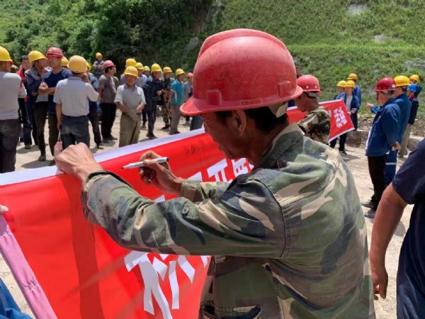 各在建項(xiàng)目與集團(tuán)公司同步啟動(dòng)安全生產(chǎn)月活動(dòng),開(kāi)展全員安全教育、承諾不違章作業(yè)并做安全承諾簽字。