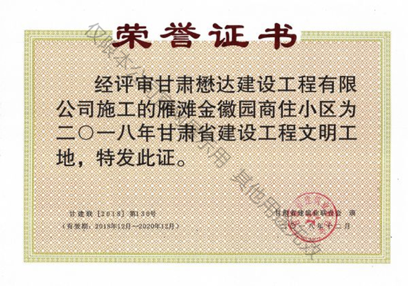 雁灘金徽園商住小區(qū)--2018年甘肅省建設工程文明工地