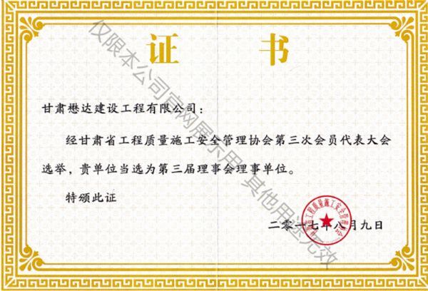 第三屆甘肅省工程質(zhì)量施工安全管理協(xié)會理事會理事單位