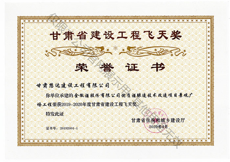 金徽酒股份有限公司優(yōu)質(zhì)酒釀造技術(shù)改造項(xiàng)目景觀廣場(chǎng)工程——甘肅省建設(shè)工程飛天獎(jiǎng)