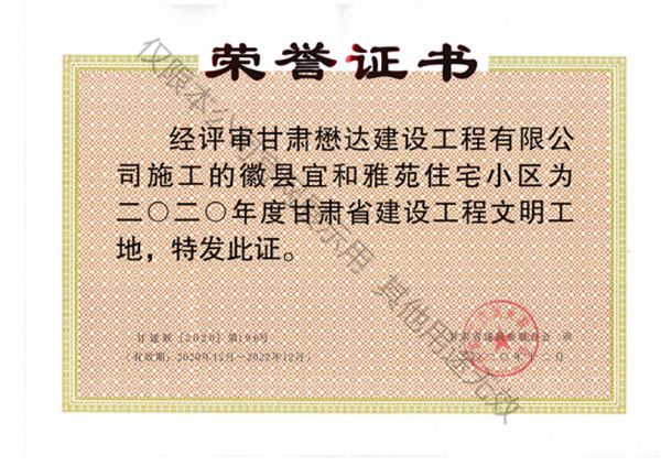 徽縣宜和雅苑住宅小區(qū)-2020年省級文明工地