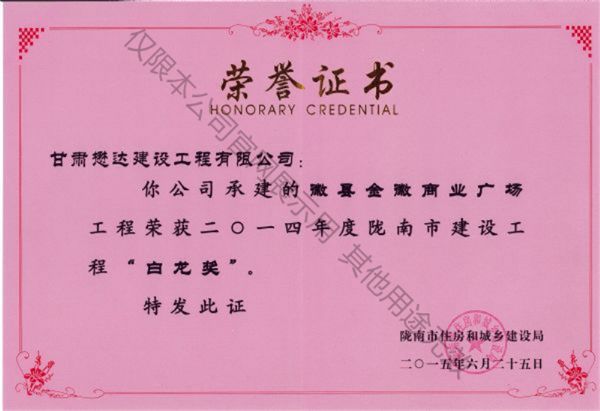 金徽商業(yè)廣場-隴南市建設工程白龍獎