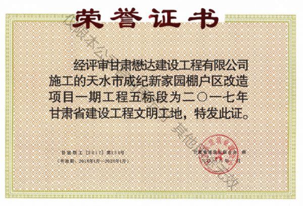 天水市成紀新家園棚戶區(qū)改造項目一期工程五標(biāo)段--2017年度甘肅省建設(shè)工程文明工地
