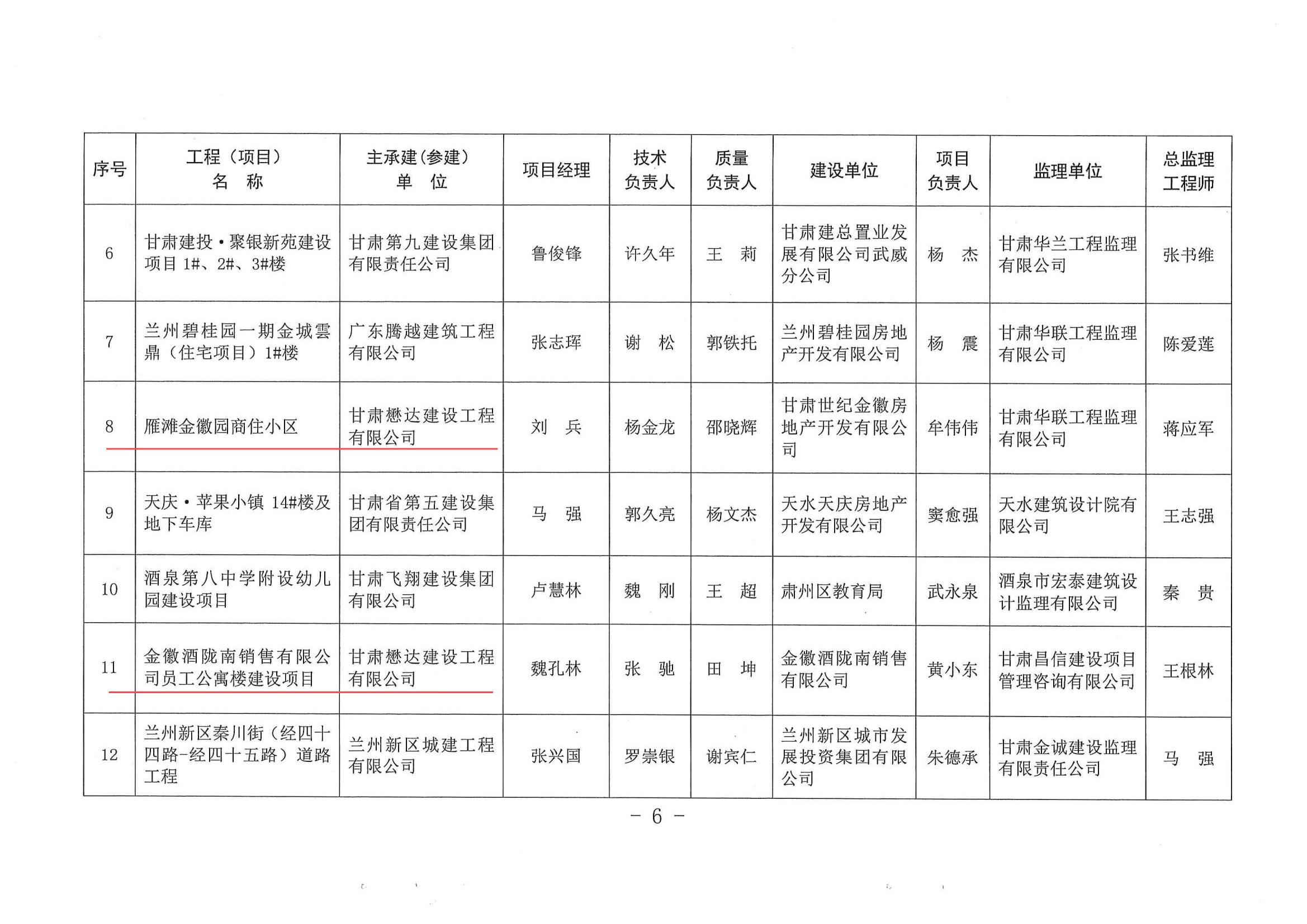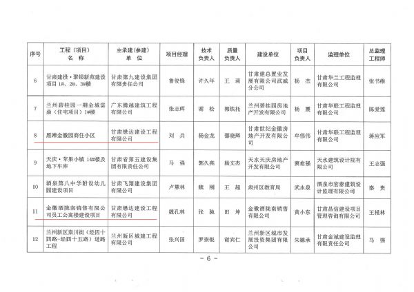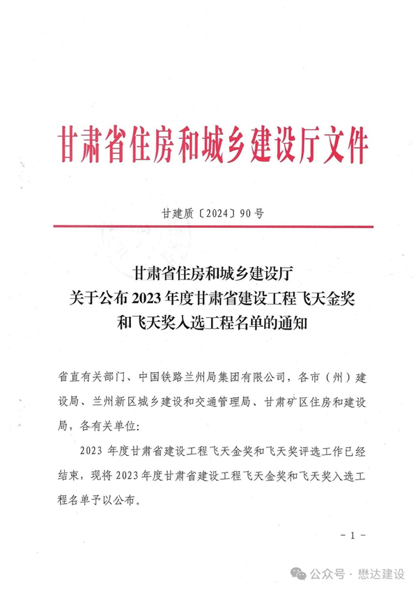 近日,2023年度甘肅省建設(shè)工程“飛天獎”入選工程名單揭曉。由甘肅懋達建設(shè)工程有限公司承建施工的雁灘金徽園商住小區(qū)和金徽酒隴南銷售有限公司員工公寓樓建設(shè)項目榮獲甘肅省建設(shè)工程“飛天獎”。